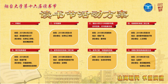 读书节已经举办了16届,受到师生的欢迎和社会各界的关注。本届读书节形式多样、内容丰富,有全校师生共同参与的好书推荐活动,有春季书展、旧书交换,有好书赏析讲座和读书交流活动,还有留学生外文经典诵读、“烟大读书之星”和“书香宿舍”评选以及经典诵读音乐会等。