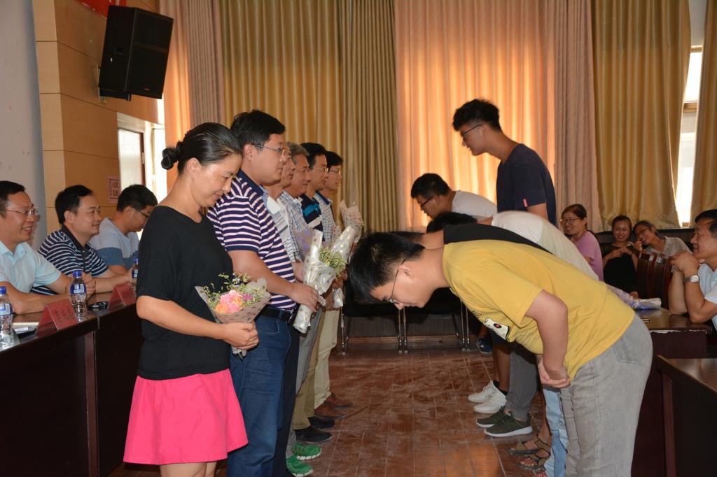 尊师重道乃久之传统,典礼设计了特殊环节——拜师。导师纷纷上台,接受学生的鲜花和拜师礼并合影留念。“拜师”环节充分体现了学生对导师的尊重,也表达了学生潜心科研的决心,更是充分展现了中华传统美德。