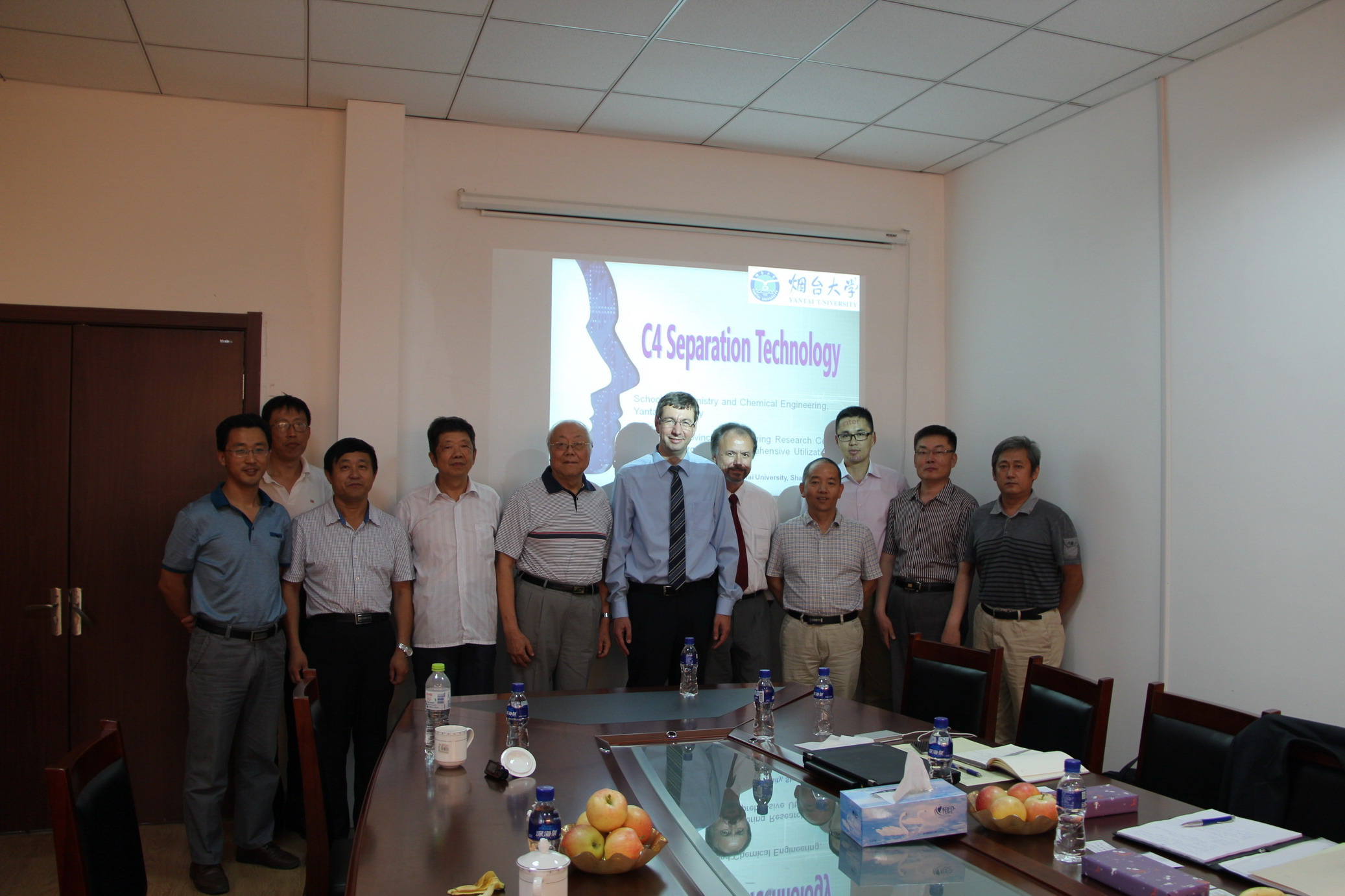 碳四分离技术”优势和课题组完成工艺包的深度给予充分的肯定和赞誉。经过双方交流协商,近期拟在丁烯提浓萃取精馏工艺及后续应用等方面展开深入合作,以实现双方优势互补、共同发展的目标。