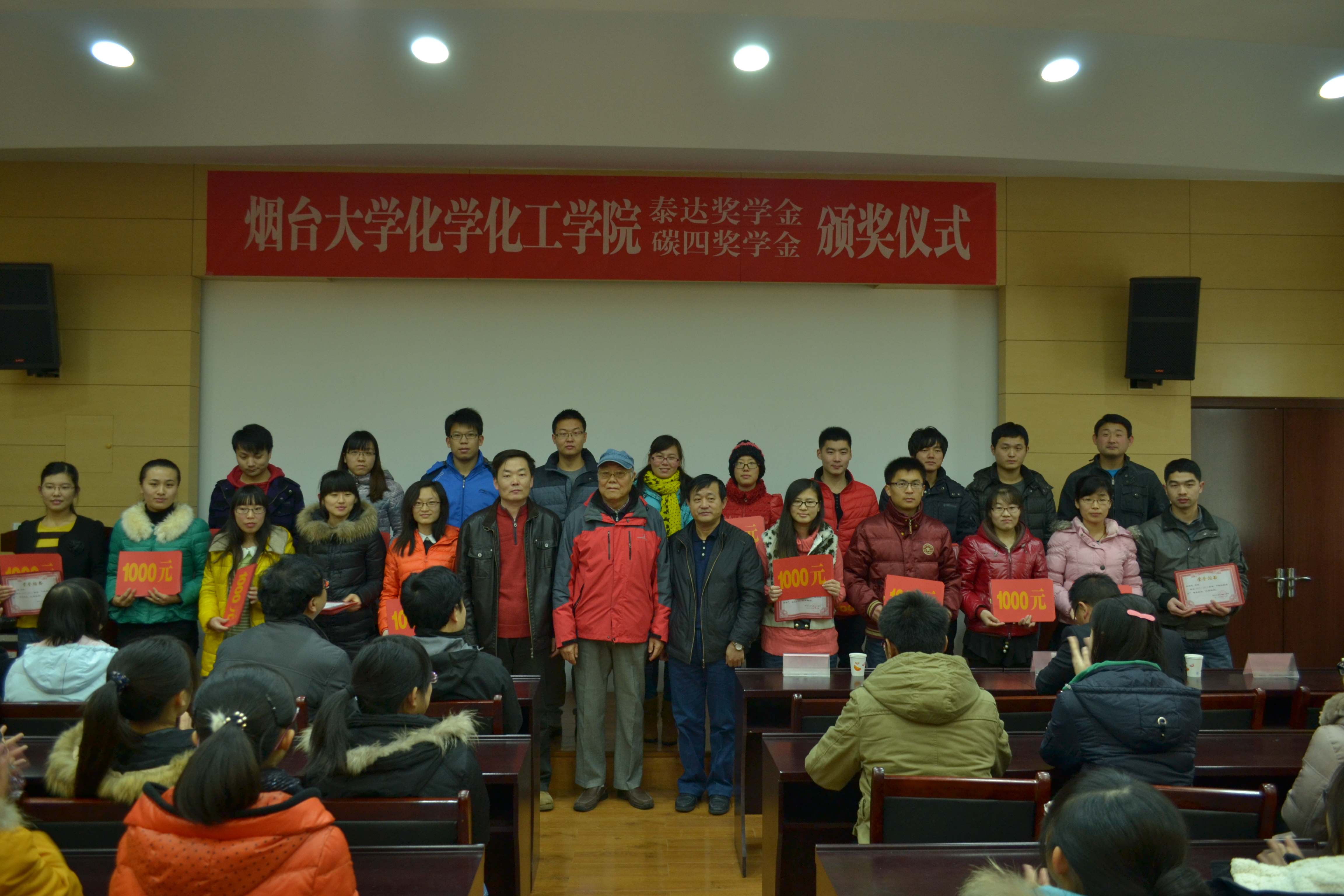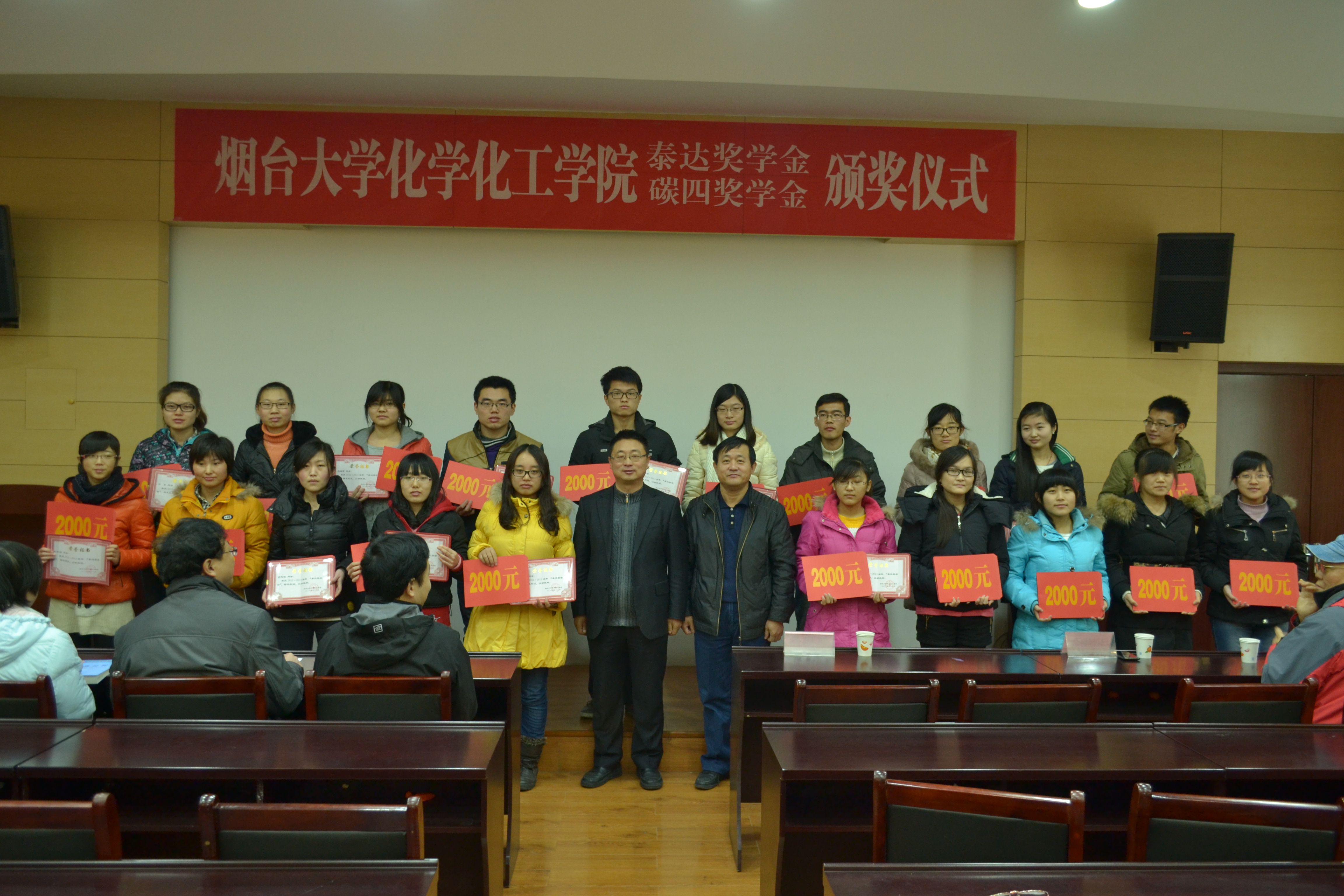 泰达奖学金于2012年5月由烟台泰达集团设立,共出资50万元,为期十年,用于奖励品学兼优的本科生。碳四奖学金于2012年7月由我校碳四分离课题组设立,共出资30万元,为期五年,用于奖励勤奋学习、勇于创新的化院本科生和研究生。本次共有20名本科生荣获泰达奖学金,20名本科生和21名研究生荣获碳四奖学金。