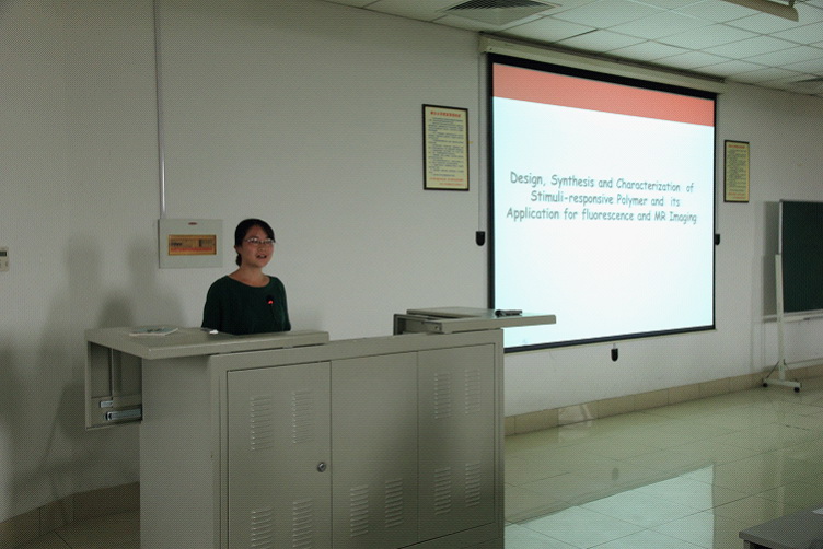 黄潇楠博士的报告则从化学与生物学的交叉出发,制备了高分子材料修饰的对pH敏感的纳米胶束,发现其可用于细胞检测与荧光成像性能,而含