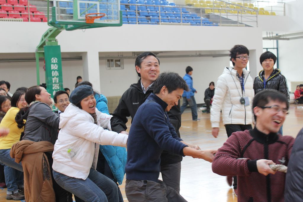 党委书记邬旭然老师、生命科学学院党总支书记郭承华老师分别致辞。希望大家比出友谊、赛出风采。裁判宣布完规则后,比赛正式开始。老师们一改往日严谨治学、温文尔雅的形象,有时犹如一群青春少年,你争我抢、加油助威;有时又如一个个孩子般“斤斤计较”、欢呼雀跃。趣味接力是最热闹的游戏之一,老师们为了争取更好的成绩,也不惜使用“作弊”等手段蒙混过关,被裁判不断罚分,引得大家笑声不断。玩儿转三大球和跳大绳主要比拼的是大家的技巧性和配合默契程度,由此能看出老师们所擅长的项目和平日的锻炼成果。最后的拔河比赛将此次趣味运动会引向高潮,两个院势均力敌的较量让全场沸腾起来,无论是比赛的还是助威的,都倾尽全力为自己的学院争得荣誉。最后的挑战项目兼备趣味性和技术性,让每个老师都有机会通过挑战获得小奖品。比赛结束后,每个老师都有不同的收获,并对此次比赛非常满意,十分开心。