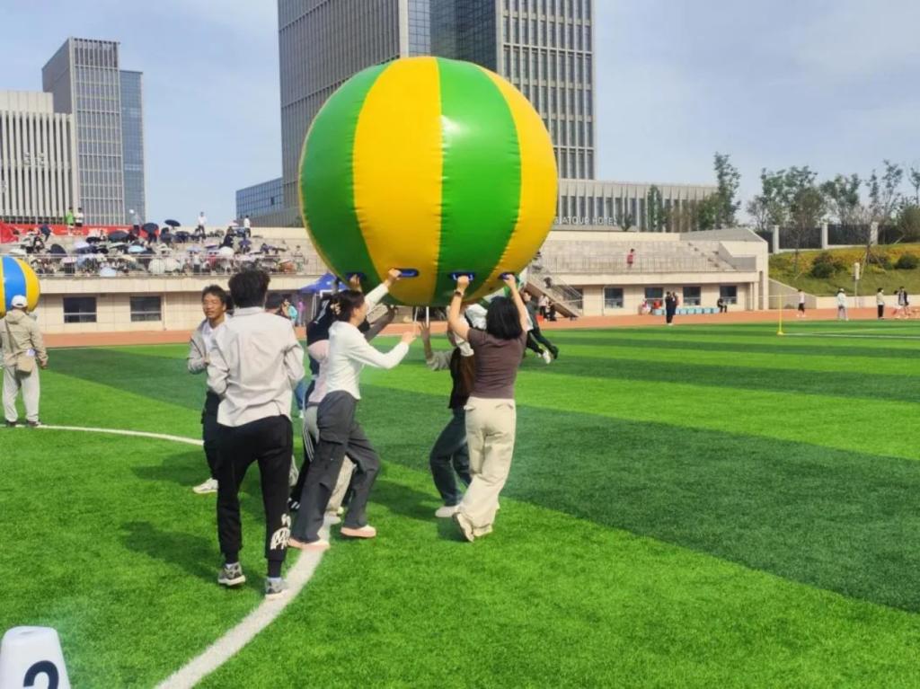 化院老师们在进行“毛毛虫”趣味比赛。