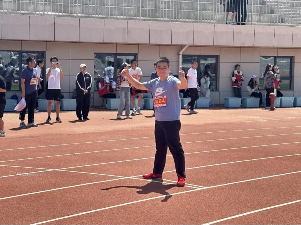 翟东昌老师正在进行男子100米决赛比赛。
