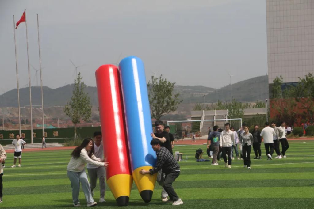 “化小水”们正在进行“铅笔大师”趣味比赛。