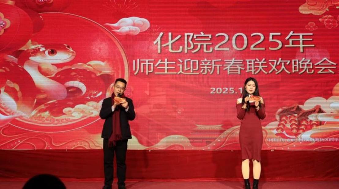 师生迎新春联欢晚会在于潍纮学术中心隆重举行。学院领导、全体教职员工、2024年退休教师、学生代表参加晚会,辅导员张成友、赵锦泽主持。