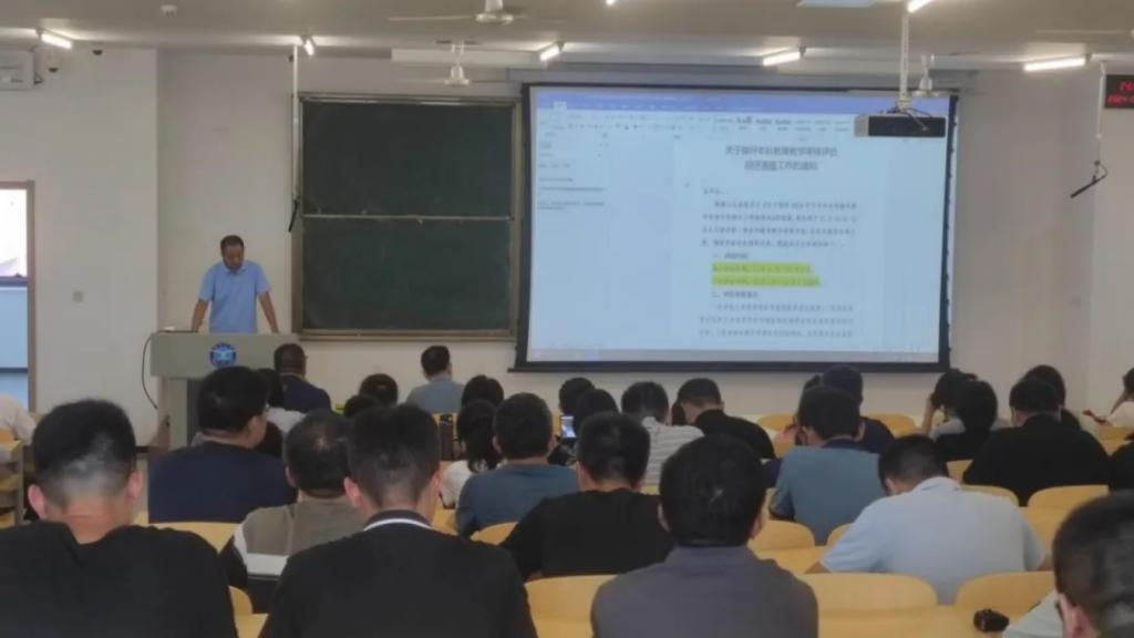 在八角湾校区第一教学楼401教室召开全体教职工理论学习大会暨本科教育教学审核评估预评估意见反馈会,院党委书记林立成主持会议,院党政领导班子、全体教职工参加大会。